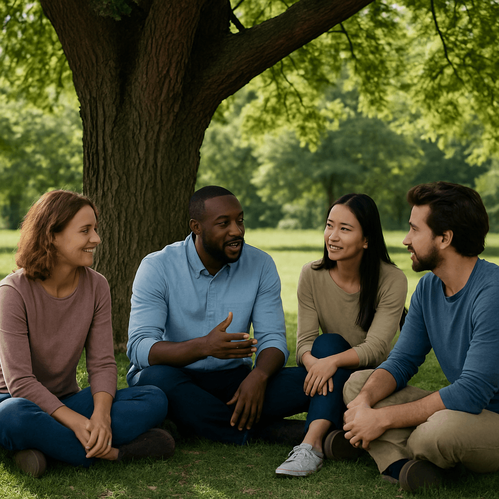 Le cercle de parole est un espace simple, sécurisant et sans pression pour goûter à la qualité du temps. Cela se passe avec ou sans thématique. La puissance du cadre permet de déposer, d'écouter et de partager en plaçant l'humain avant le statut.